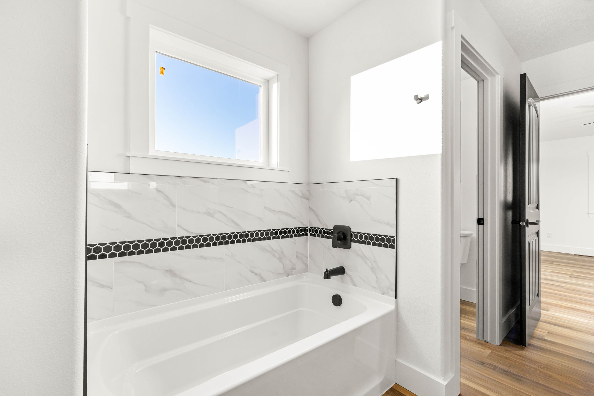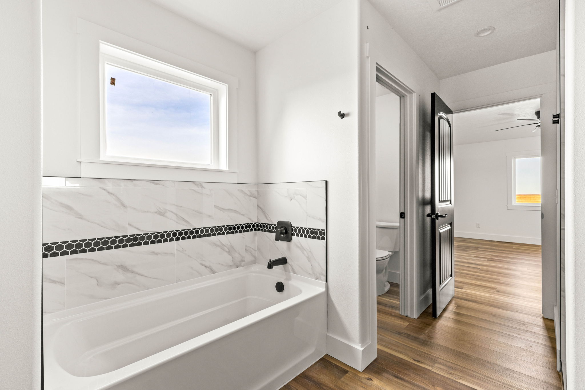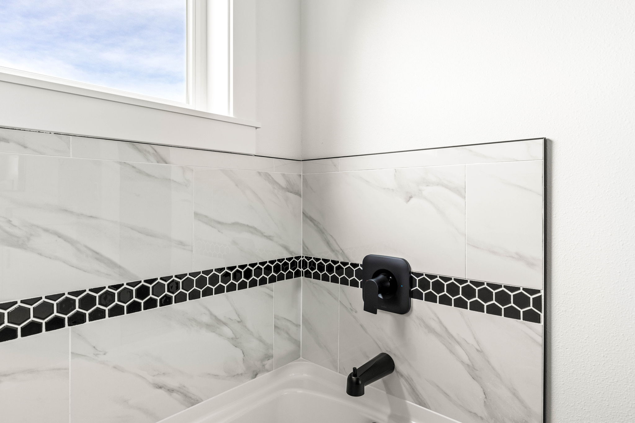 - Master has separate soaker tub and walk in tile shower